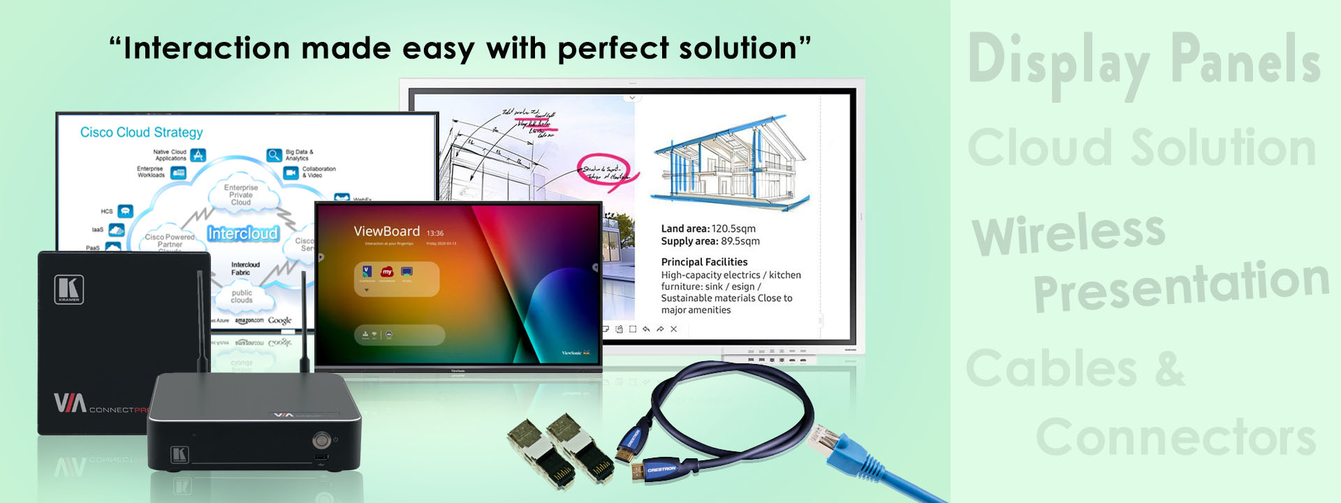 At Kore, We are dedicated to providing niche products and complete solutions to cater to all your audio and visual needs, including AV Control and switching, Audio and video conferencing solutions, audio solutions, display panels, projectors, cloud solutions, wireless presentations, cables and connectors and more…